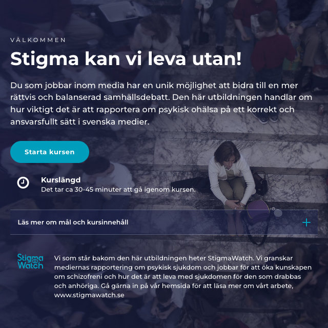 Den här utbildningen handlar om hur viktigt det är att rapportera om psykisk ohälsa på ett korrekt och ansvarsfullt sätt i svenska medier.